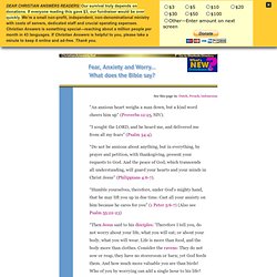 Fear, Anxiety and Worry… What does the Bible say? “According to the Bible, there is nothing wrong with realistically acknowledging and trying to deal with the identifiable problems of life. To ignore danger is fooling and wrong. ... Fetch Full Source